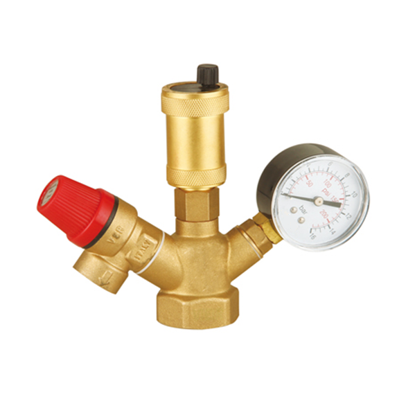Skat sti 3 бар группа безопасности, предназначена для установки в системы отопления и водоснабжения, где рабочие давление не должно превышать 3 бар. В комплект группы безопасности входит манометр, воздухоотводчик и клапан предохранительный.