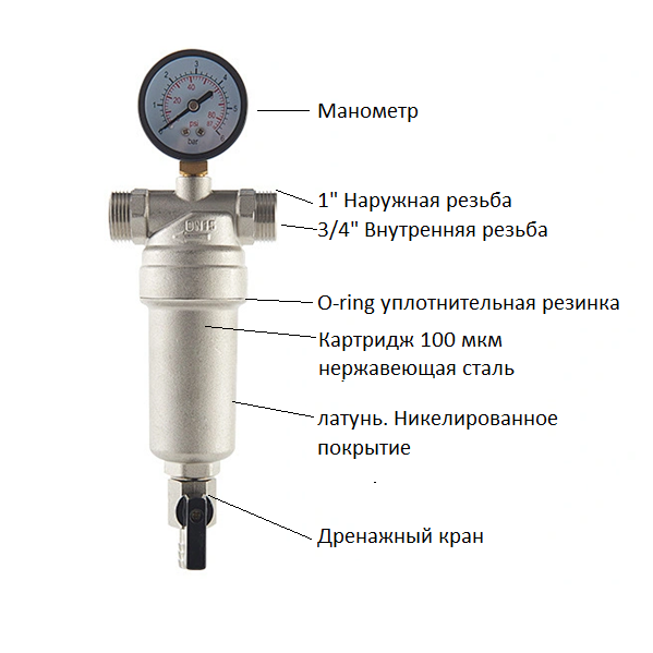 5. Сделан фильтр из латуни, устойчивый к вымыванию цинка. Никелированный.