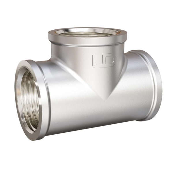 Тройник LD Pride 1/2" внутренняя резьба, латунный резьбовой фитинг с никелированным покрытием, служит для соединения трех отрезков трубы, один из которых установлен перпендикулярно двум другим.