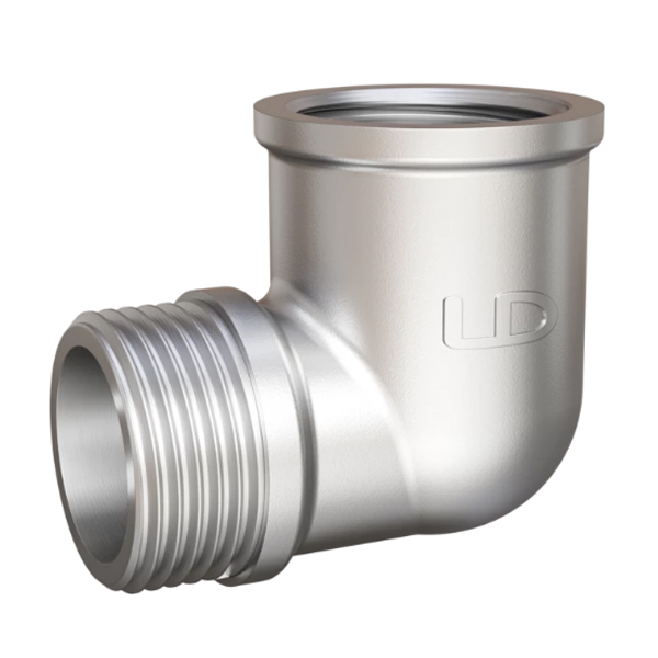 Угол 90 градусов LD Pride 1" внутренняя-наружная резьба, латунный резьбовой фитинг с никелированным покрытием, служит для соединения двух труб под прямым углом.
