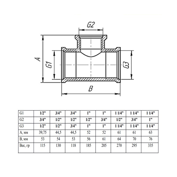 - Диаметр: 1"х1/2"х1", внутренняя резьба.