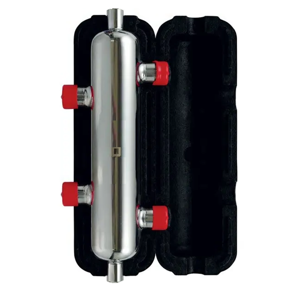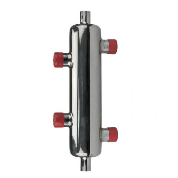 Skat 15005B гидравлическая стрелка, 2 входа и 2 выхода. Мощность системы отопления до 45 кВт. Гидрострелка сделана из нержавеющий стали, в комплект входит утеплитель и крепление на стену. Гидрострелка используется в системах отопления для правильной организации системы отопления с несколькими насосами и контурами, что способствует выравниванию температур теплоносителя в системе, а также предотвращает воздействия насосов друг на друга.