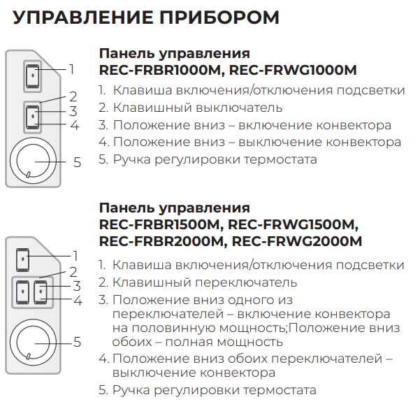 1. Конвектор электрический, мощность: 2000/1000 Вт.