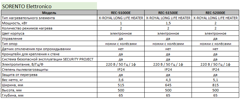 Royal Clima SORENTO Elettronico REC-S 1000Е конвектор электрический, мощность 1000 Вт. Установлен Х- образный монолитный нагревательный элемент. Цифровое управление температурой. Высокая эффективность распределения тепла: 85% - эффект конвекции и 15% - эффект теплового излучения в помещении.