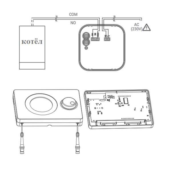 Внимание, подвода для подключения блока к котлу не идут в комплекте. Рекомендуемый провод для подключения: 2-ух жильный с сечением не менее 0.75 мм.