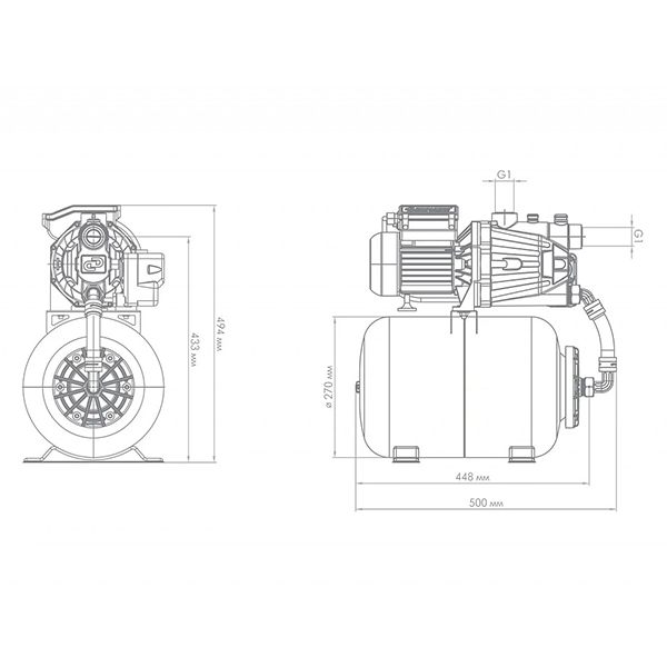 - Гидроаккумулятор: 24 литров, окрашенная сталь.