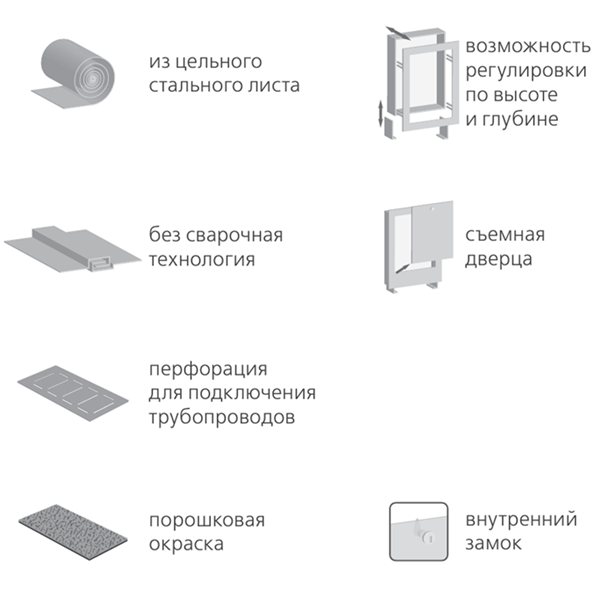 Тип установки: скрытый монтаж, шкаф устанавливается вровень со стеной.