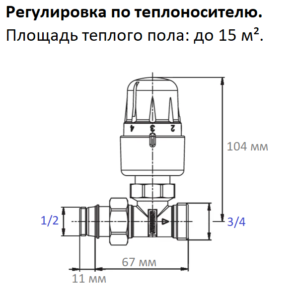 Вентиль RTL Meibes F11882 служит для регулировки температуры теплоносителя в контуре тёплого пола площадью до 15 м². Регулировка осуществляется по температуре обратного потока теплоносителя.